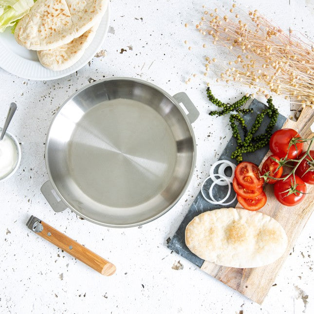 La poêle Mutine combine élégance et fonctionnalité. Son design épuré s'intègre parfaitement dans toutes les cuisines, tandis que sa conception en inox assure une cuisson homogène et saine. Grâce à sa poignée amovible, elle offre un gain de place considérable, idéale pour les espaces de rangement réduits.