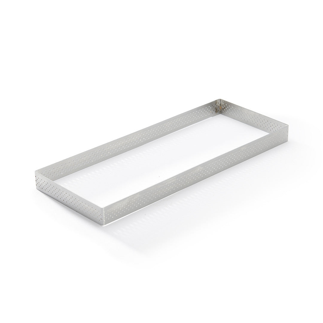 Cercle à tarte rectangle perforé De Buyer Valrhona – Inox 18/10, cuisson uniforme, démoulage précis