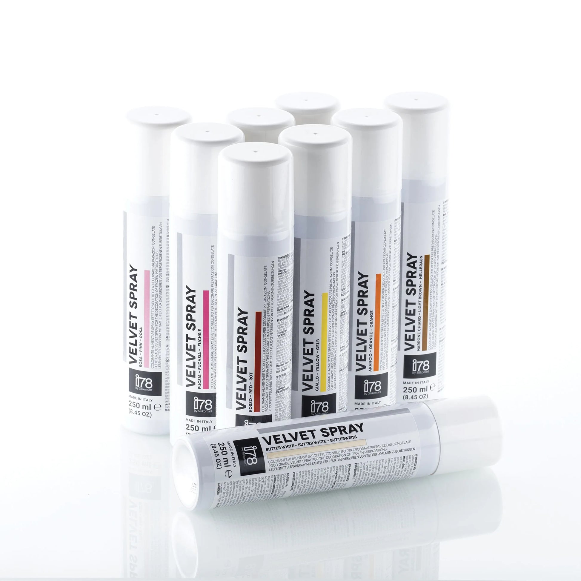 Sublimez vos entremets et desserts avec un fini velours élégant et raffiné grâce aux sprays Velvet Silikomart. Faciles à utiliser, ils transforment vos créations en véritables œuvres d’art pâtissières en un seul geste.
